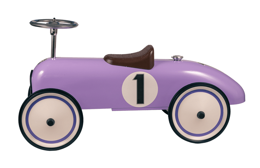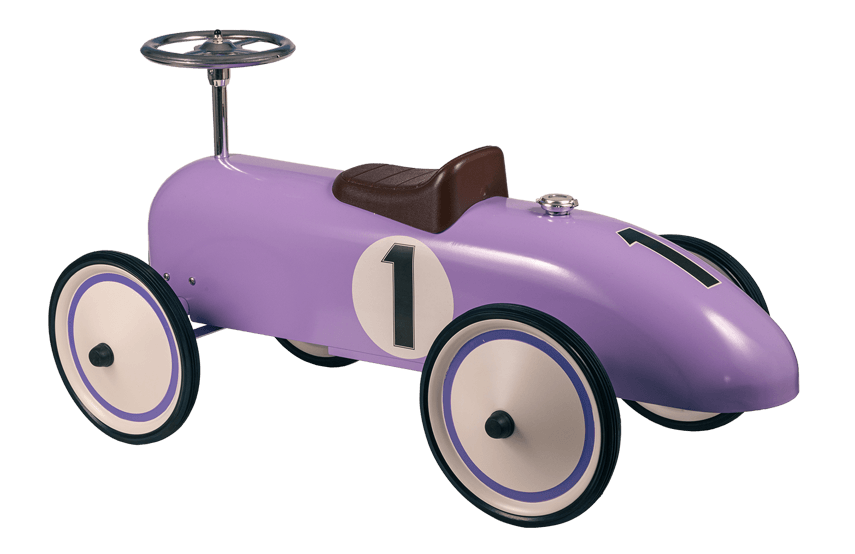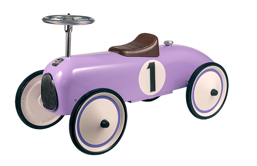 Dieses schöne Kate Retro Roller Laufauto im Farbthema Flieder basiert auf dem Stil der Formel-1-Autos der Vergangenheit. Stundenlanger Spielspaß drinnen und draußen ist garantiert.